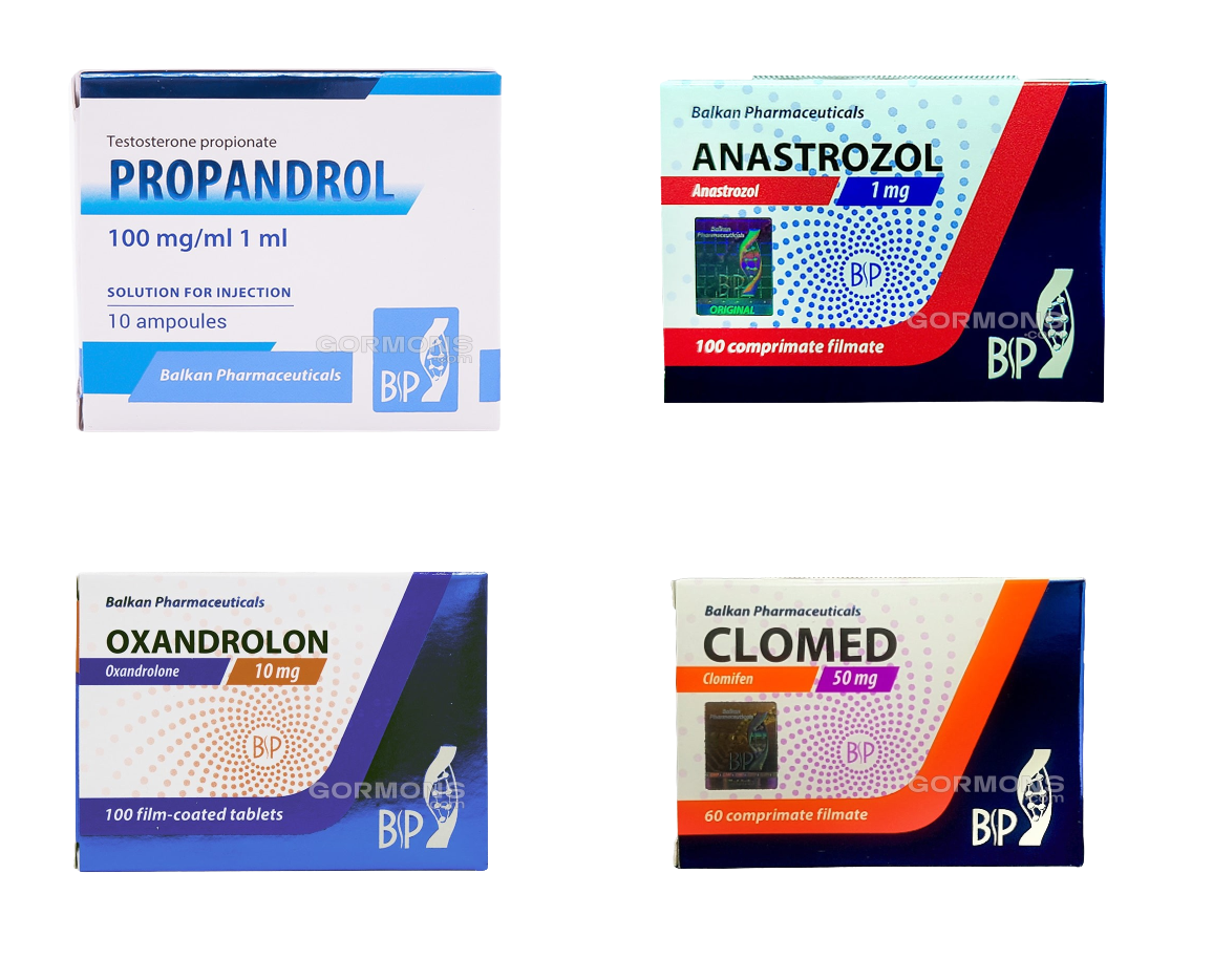 Препараты, входящие в курс: оксандролон (264 таб.), тестостерона пропионат (20 ампул), анастрозол (40 таб.), кломид (40 таб.)